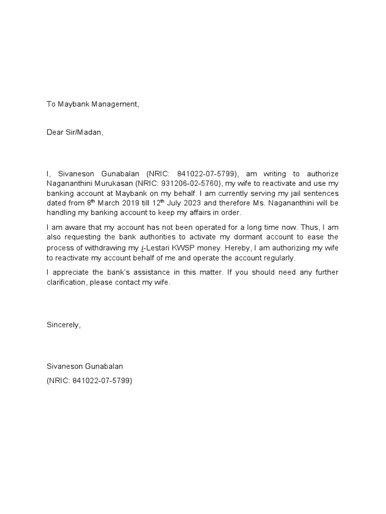 Sivaneson Bank Authorization Letter Pdf