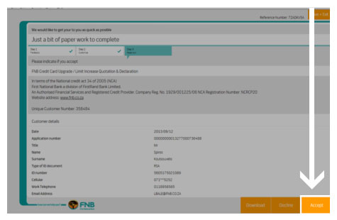 Login to Online Banking using your username and password. Unilaterally and in accordance with the NCA if you at the time of applying for the Credit Facility or at any later time in writing have specifically requested the option of having the Credit Limit automatically increased from time to time.