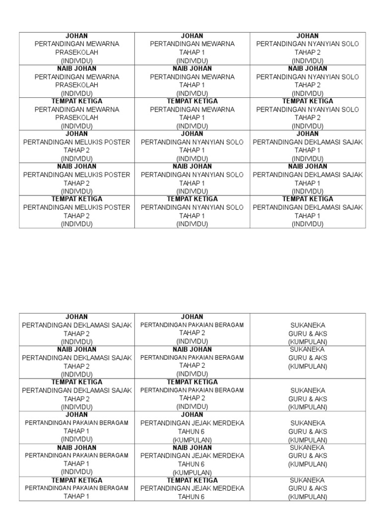 Johan naib johan tempat ketiga in english. Johan bagi setiap kategori membawa pulang piala pusingan wang tunai RM10000 dan sijil penghargaan. Cara Liga Dua Kumpulan 6 - 8 pasukan dibahagi kepada dua kumpulan dan dijalankan secara liga. Naib Johan 14 ENGLISH JAMBOREE NATIONAL LEVEL DIKIR BARAT IN ENGLISH - SK Pengkalan Raja - Pencapaian.