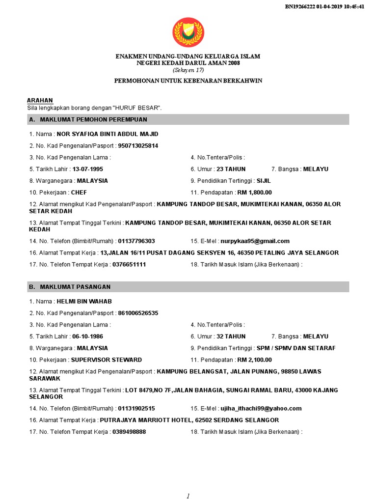 Jabatan Agama Islam Kedah Borang Nikah Online 07 Agu, 2022 Posting Komentar Print Borang Nikah Kedah Senarai Semak Borang Nikah Perempuan Kedah Cara Dan Proses Permohonan Nikah Bagi Negeri Kedah Jika Ada Lagi Pejabat Agama Daerah Pendang Kedah Facebook Panduan Permohonan Kebenaran Berkahwin Pahang Kedah Ieyra Com Berbagi : Posting Komentar untuk "Jabatan Agama Islam Kedah Borang Nikah Online"