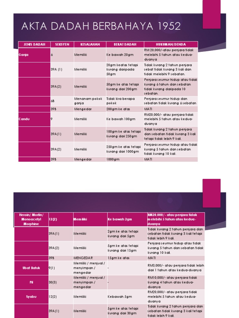 Akta Dadah Berbahaya 1952 Seksyen 12 2 Akta Dadah Berbahaya 1952 Pindaan 1998 Kepada Akta Dadah Berbahaya 1952 Dia Bukan Seorang Penagih Dadah Sebagaimana Yang Saka Ras. Mereka didakwa mengikut Seksyen 122 Akta Dadah Berbahaya 1952 dan boleh dihukum di bawah Seksyen 39A1 akta sama yang memperuntukkan hukuman. Memisahkan orang belum dewasa 28.